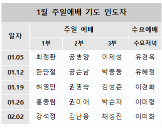 1월 주일예배 기도 인도자