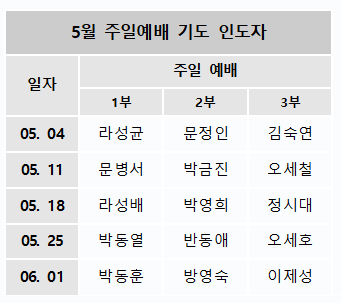 5월 주일예배 기도인도자