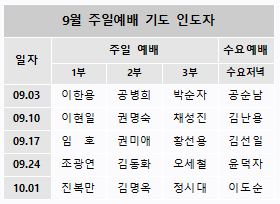 9월 주일예배 기도 인도자