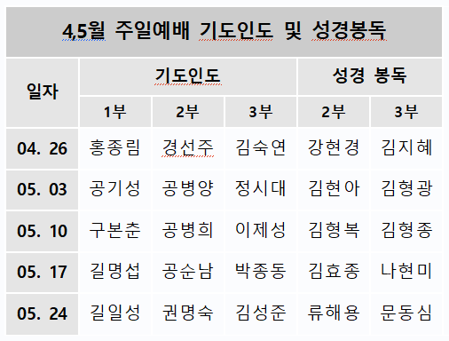 4,5월 주일예배 기도인도 및 성경봉독