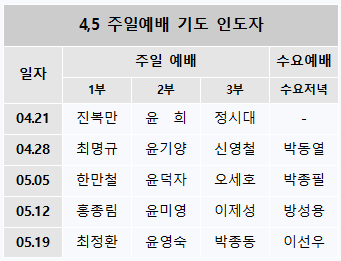 4,5월 주일예배 기도 인도자