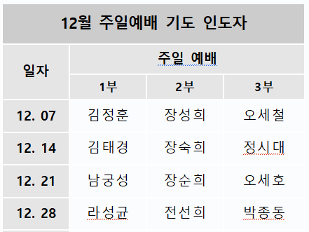 12월 예배 인도자