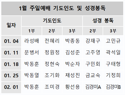 2026년 1월 기도인도 및 성경봉독