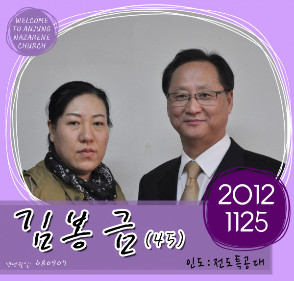 김봉금 성도 (2012-11-25) 등록