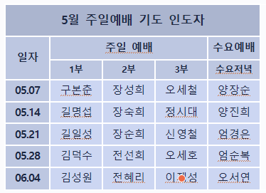 5월 주일예배 기도 인도자
