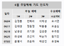 6월 주일예배 기도 인도자