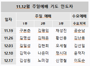 11, 12월 주일예배 기도 인도자