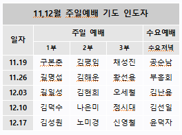 11,12월 주일예배 기도 인도자