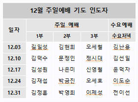 12월 주일예배 기도 인도자