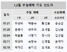 1,2월 주일예배 기도인도자