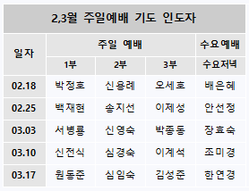 2,3월 주일예배 기도 인도자