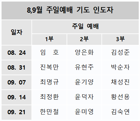 8,9월 주일예배 기도인도자